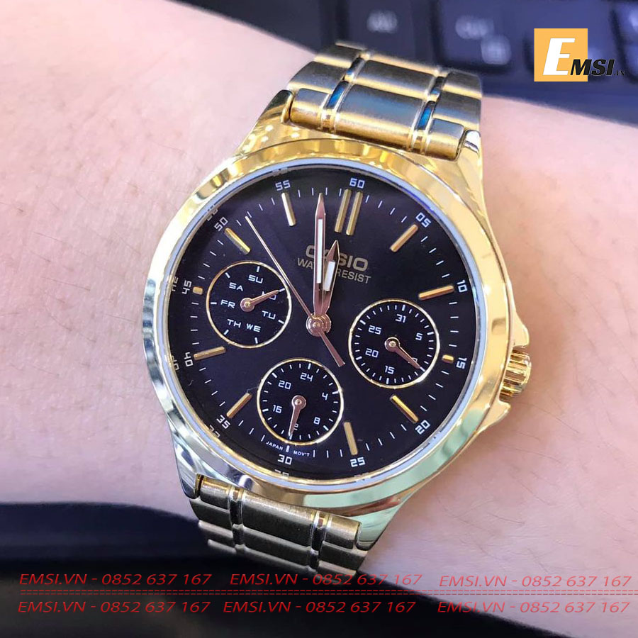 Đồng Hồ Nữ Casio LTP-V300G-1AUDF Dây Kim Loại Mạ Vàng - Mặt Màu Đen Cá Tính Kích thước vỏ : 38×33,2×8,2mm, chống nước 50m.