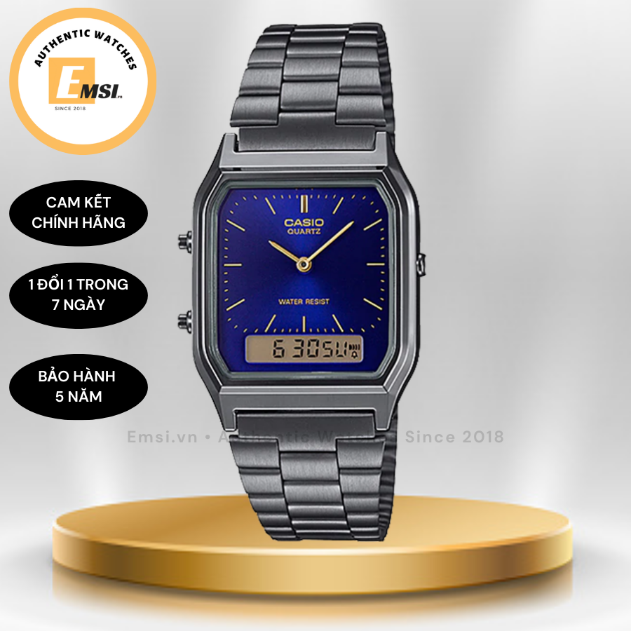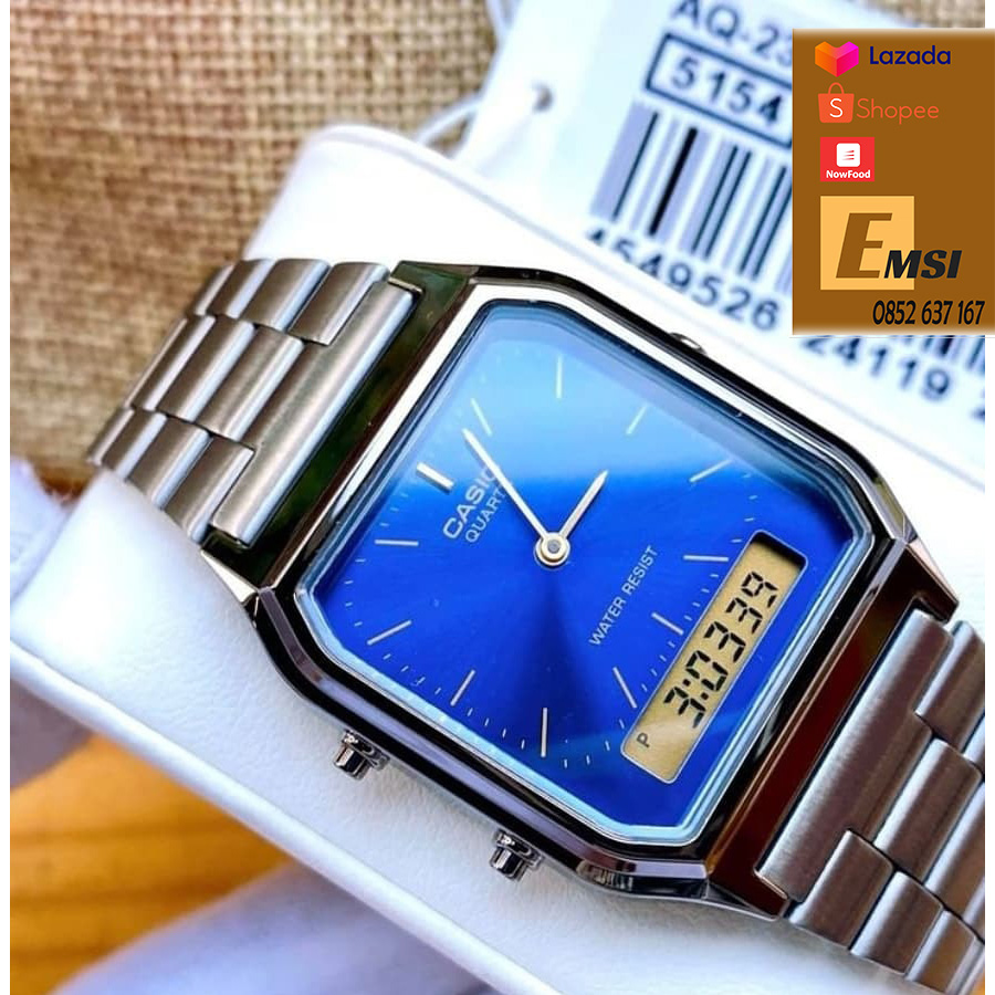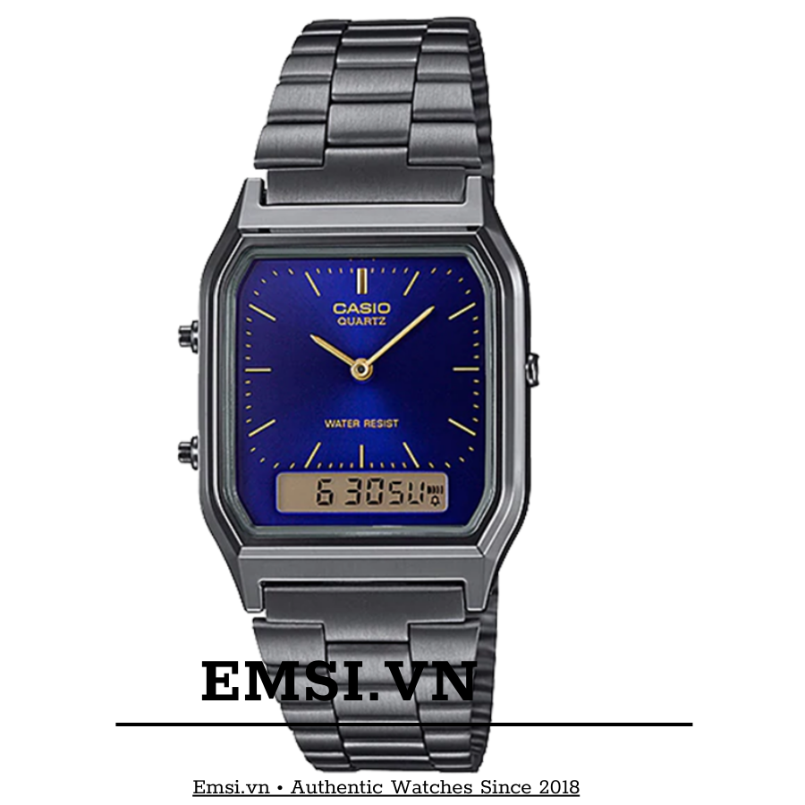 Đồng hồ Casio Nam / Nữ AQ-230GG-2ADF thiết kế mặt vuông cổ điển.