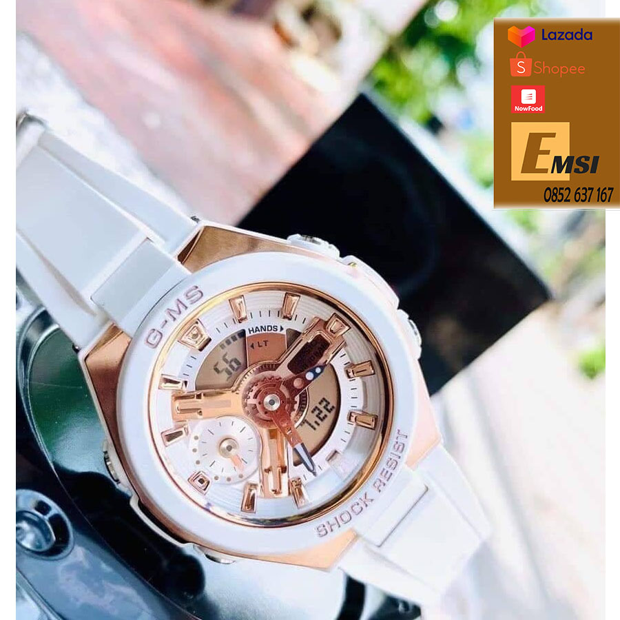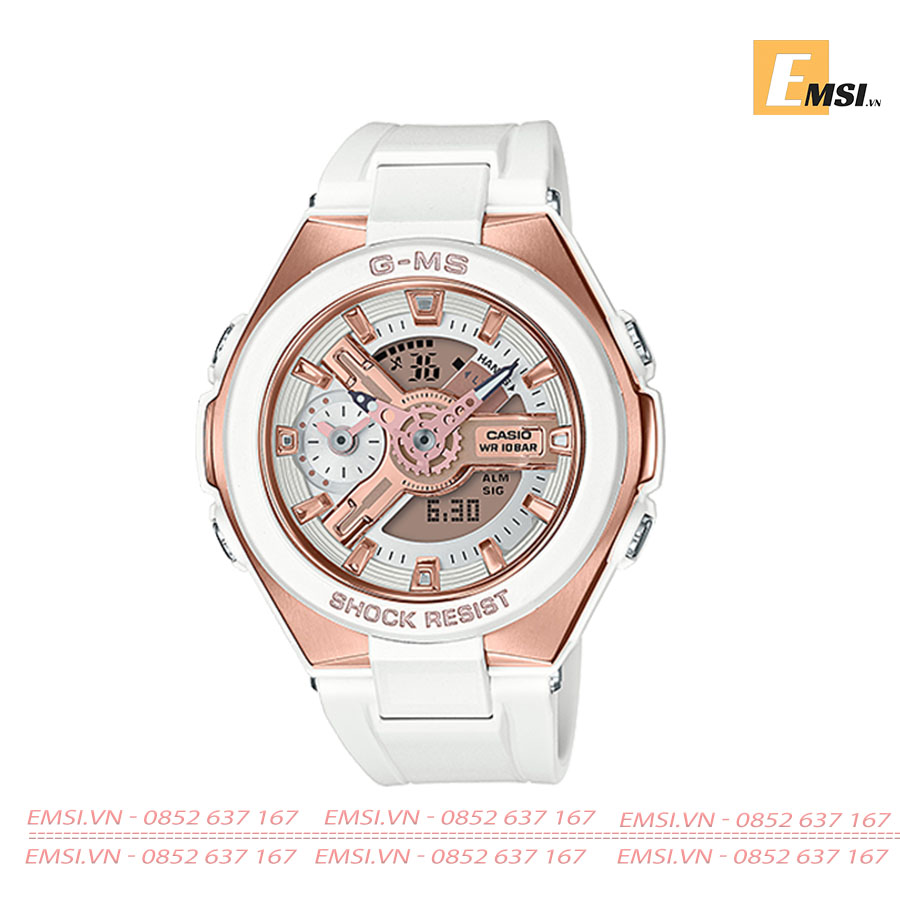 Từ dòng đồng hồ BABY-G G-MS dành cho phụ nữ hiện đại năng động và tinh tế xuất hiện một bộ mẫu chọn lọc có màu sắc sống động. Các bộ phận kim loại màu vàng và hồng vàng được sử dụng phóng khoáng tạo nên một bộ sưu tập mẫu tăng thêm nét duyên sáng cho cổ tay của người phụ nữ. Kim loại cũng được dùng để mạ vòng bao mặt đồng hồ, vòng dây đeo và chốt. Hình thức giống như thiết bị kim loại rất đẹp phù hợp với phụ nữ.