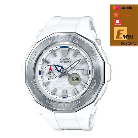 Đồng hồ Casio Baby-G Nữ BGA-225-7A thiết kế mặt đồng hồ đa chiều mô phỏng mặt biển gợn sóng lấp lánh bên bãi biển. Là 1 sản phẩm Casio Baby-G Nhật Bản chuyên chống va đập, chống nước tối thiểu 100m, wr10bar PROTECTION.