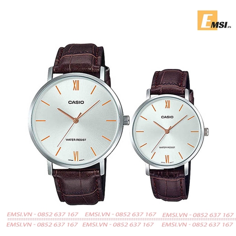 7. Đồng Hồ Casio Cặp Đôi MTP-VT01L-2BUDF & LTP-VT01L-2BUDF Dây Da - Mặt Số La Mã - Chống Nước EMSI.VN