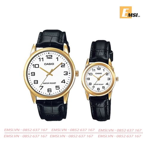 2. Đồng Hồ Cặp Đôi Casio MTP-V001GL-7BUDF Và LTP-V001GL-7BUDF Dây Da - Viền Mặt Mạ Vàng EMSI.VN